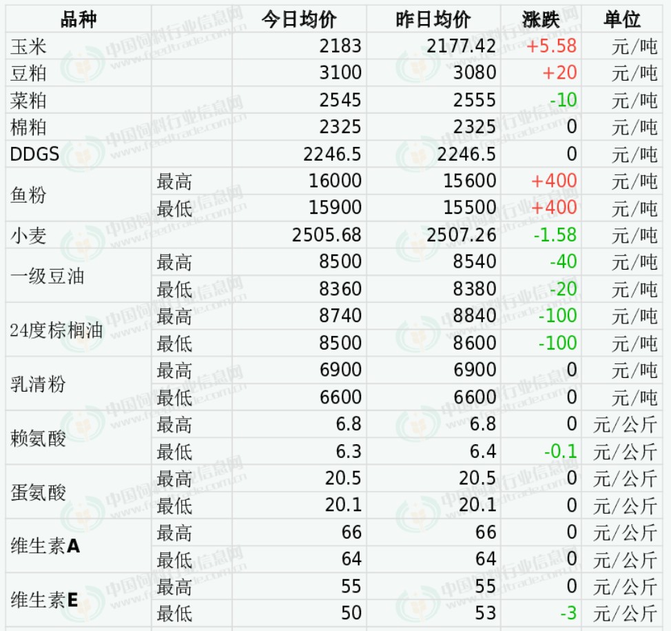 外盘方面,秘鲁新季超级蒸汽鱼粉预售参考价格为CNF1900美元/吨,实际成交议价。国内进口鱼粉方面,鱼粉持货商挺价观望,但需求不佳,鱼粉消耗慢。当前秘鲁超级蒸汽鱼粉价格集中在15900-16000元/吨,上涨400元/吨,实际成交议价。短期鱼粉价格挺价观望,等待新季捕鱼政策的最终公布。
