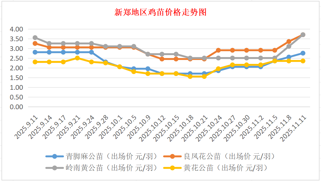 新郑地区鸡苗价格走势图(来源:鸡病专业网)
