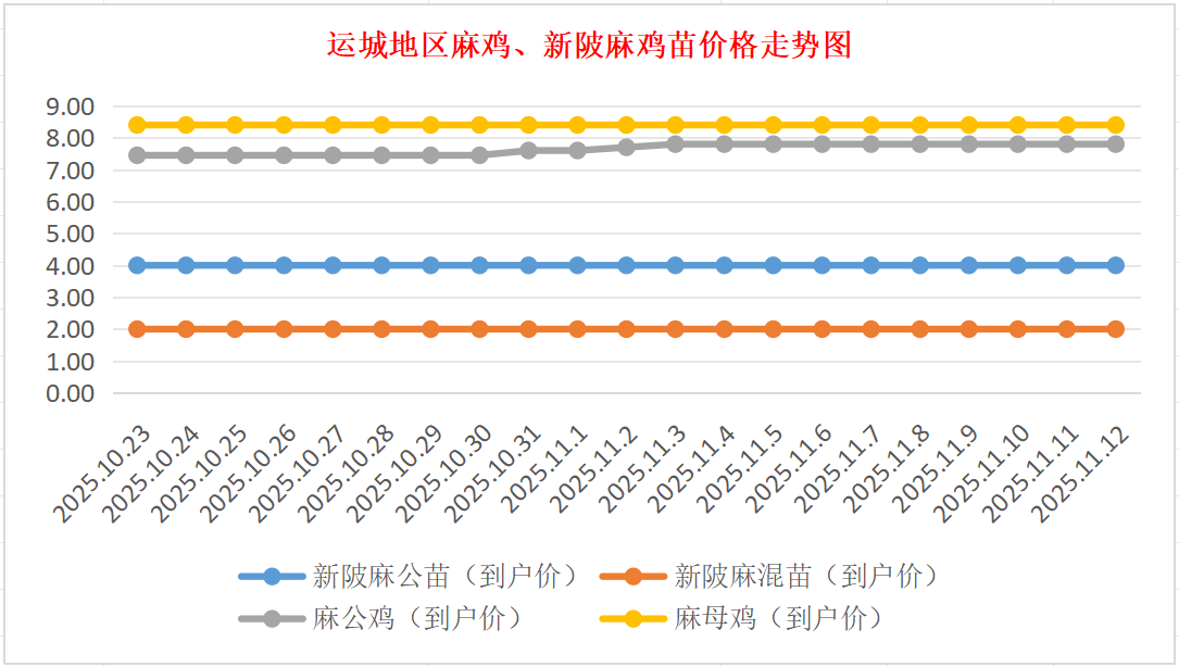 运城地区麻鸡、新陂麻鸡苗价格走势图(来源:鸡病专业网)