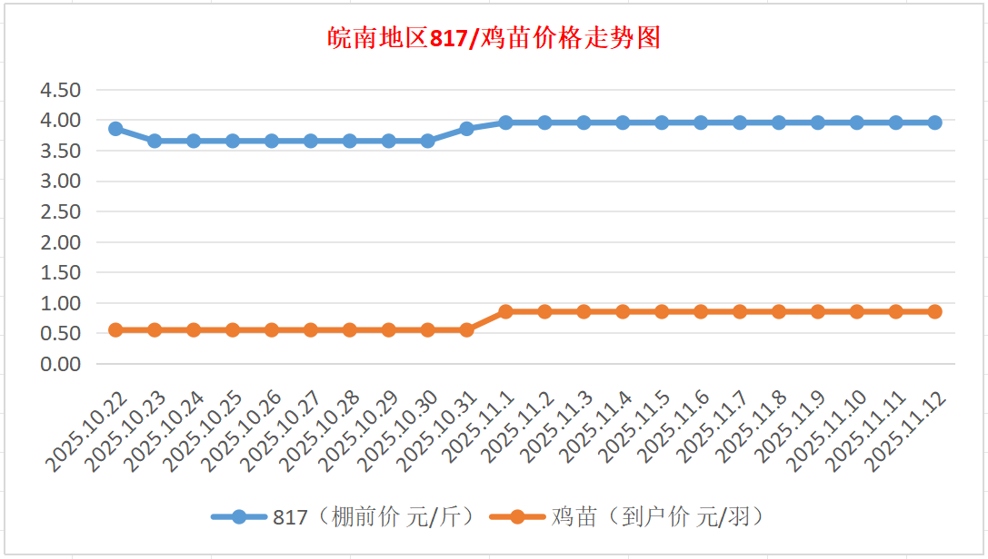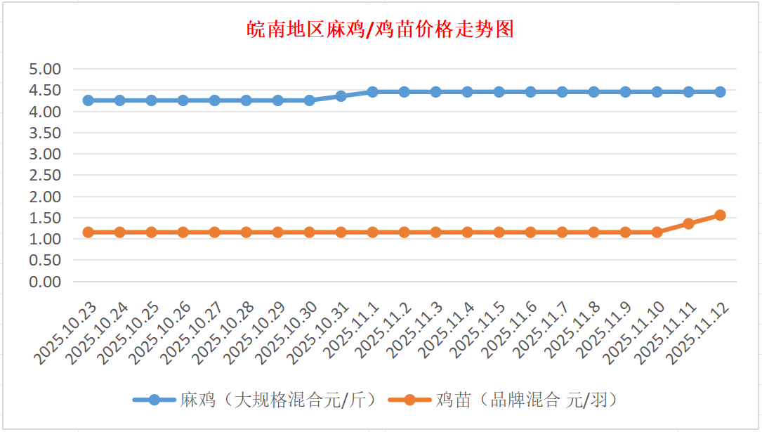 鸡病专业网独家信息:2025年11月12日皖南地区817-麻鸡行情最新走势