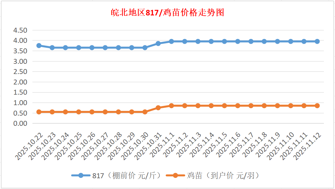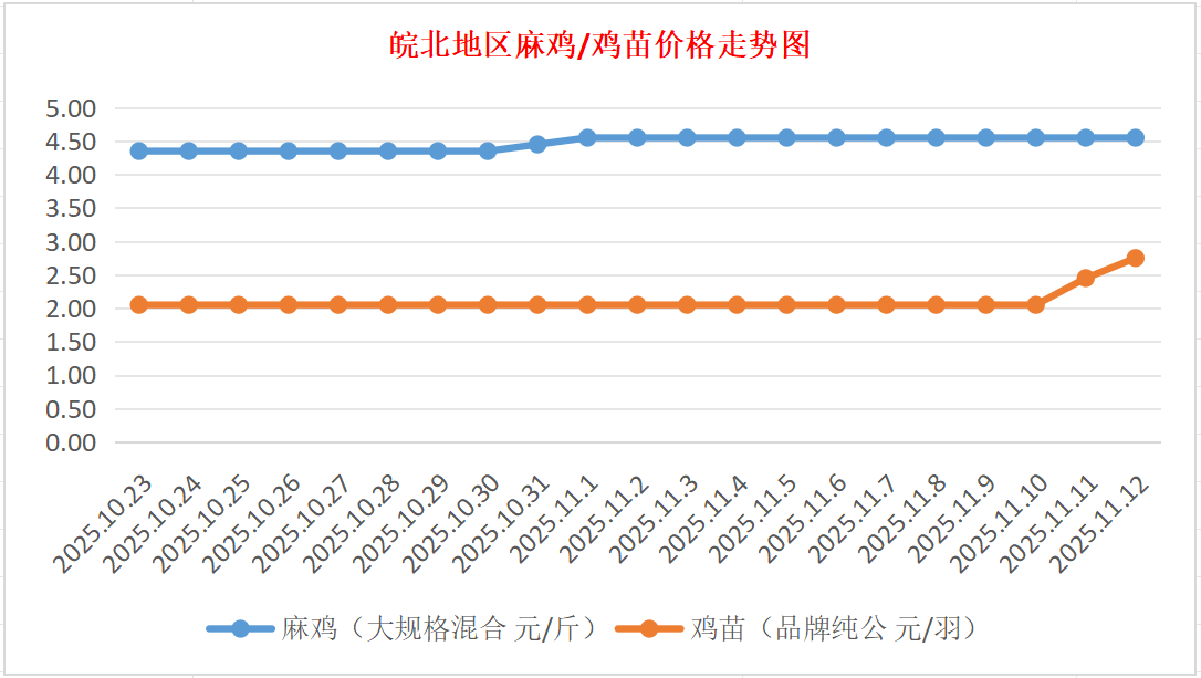 鸡病专业网独家信息:2025年11月12日皖北地区817-麻鸡行情最新走势
