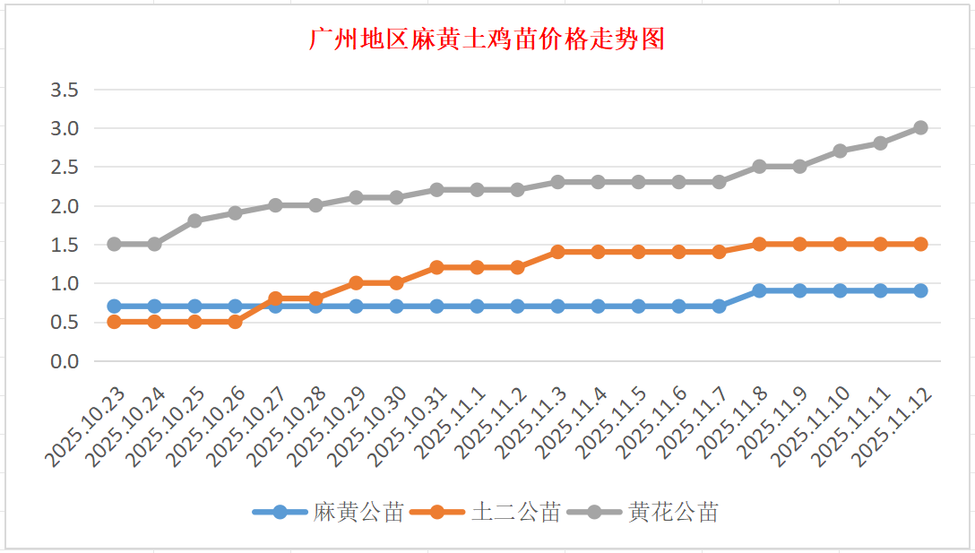 11月12日广州地区麻、黄、土鸡苗价格行情