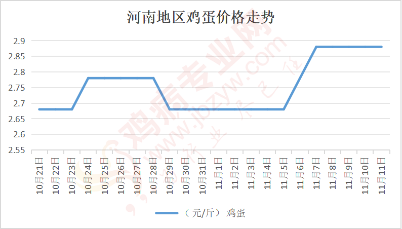 鸡病专业网消息:11月11日,河南郑州鸡蛋2.9元/斤,稳;新密鸡蛋2.9元/斤,稳;荥阳鸡蛋2.9元/斤,稳;中牟鸡蛋2.9元/斤,稳;周口鸡蛋2.85元/斤,稳;商丘鸡蛋87元/30斤,稳;鹤壁鸡蛋2.85元/斤,稳;汝州鸡蛋2.85元/斤,稳;开封鸡蛋86-87元/30斤,稳;漯河鸡蛋2.85元/斤,稳;漯河临颍鸡蛋2.85元/斤,稳;许昌鸡蛋2.9元/斤,稳;南阳鸡蛋2.85元/斤,稳;南阳邓州鸡蛋2.85元/斤,稳;新乡鸡蛋2.85元/斤,稳;安阳鸡蛋2.85元/斤,稳;新郑鸡蛋2.9元/斤,稳;登封鸡蛋2.9元/斤,稳;平顶山鸡蛋2.9元/斤,稳;驻马店鸡蛋2.9元/斤,稳;三门峡鸡蛋2.9元/斤,稳;焦作鸡蛋2.85元/斤,稳;信阳鸡蛋2.85元/斤,稳;濮阳鸡蛋2.85元/斤,稳。