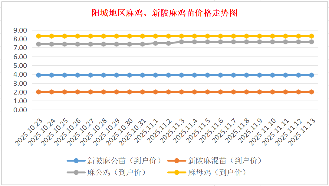 阳城地区麻鸡、新陂麻鸡苗价格走势图(来源:鸡病专业网)