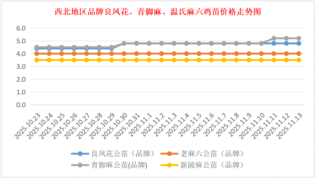 西北地区麻鸡苗价格走势图(来源:鸡病专业网)