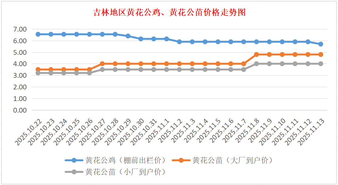 11月13日吉林黄花公鸡、鸡苗价格行情