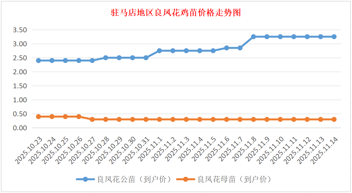 11月14日驻马店地区良凤花、岭南黄鸡苗价格行情