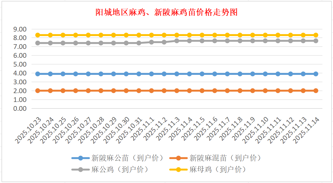 阳城地区麻鸡、新陂麻鸡苗价格走势图(来源:鸡病专业网)