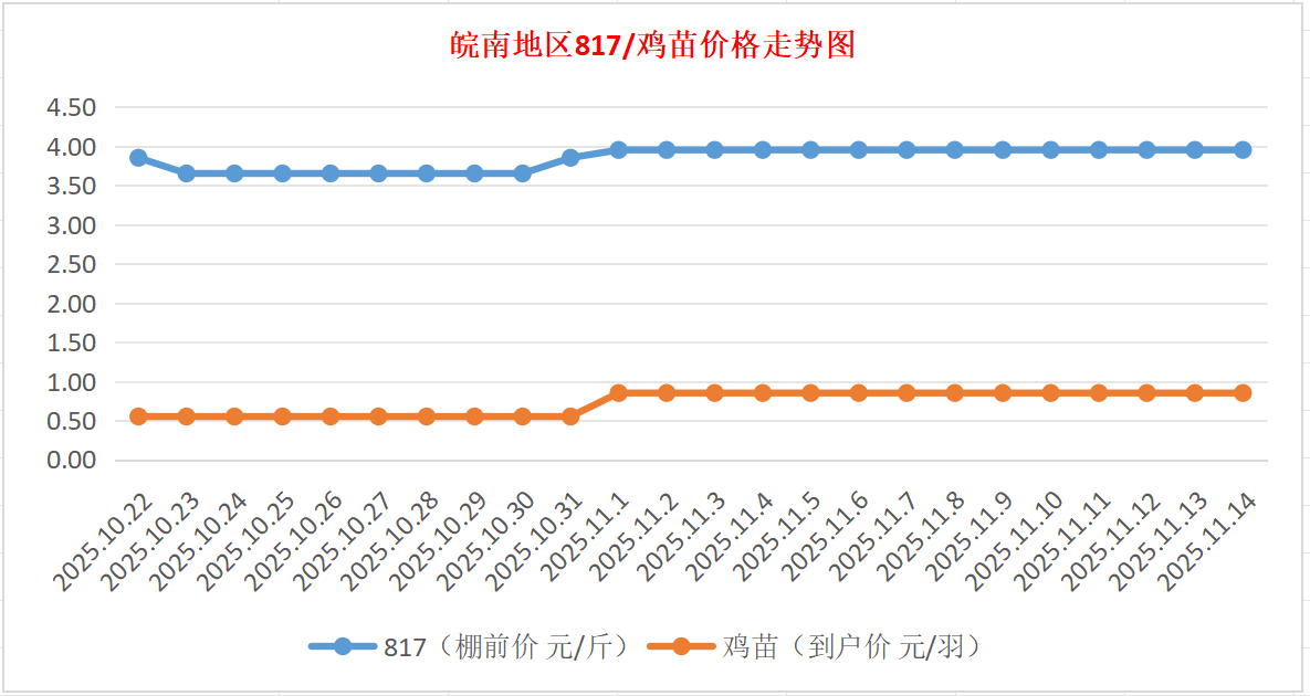 鸡病专业网独家信息:2025年11月14日皖南地区817-麻鸡行情最新走势