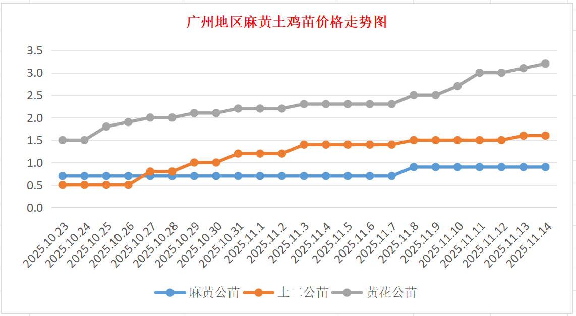 11月14日广州地区麻、黄、土鸡苗价格行情