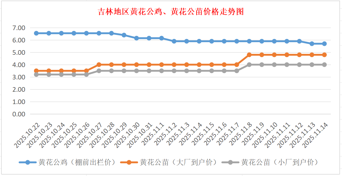 11月14日吉林黄花公鸡、鸡苗价格行情