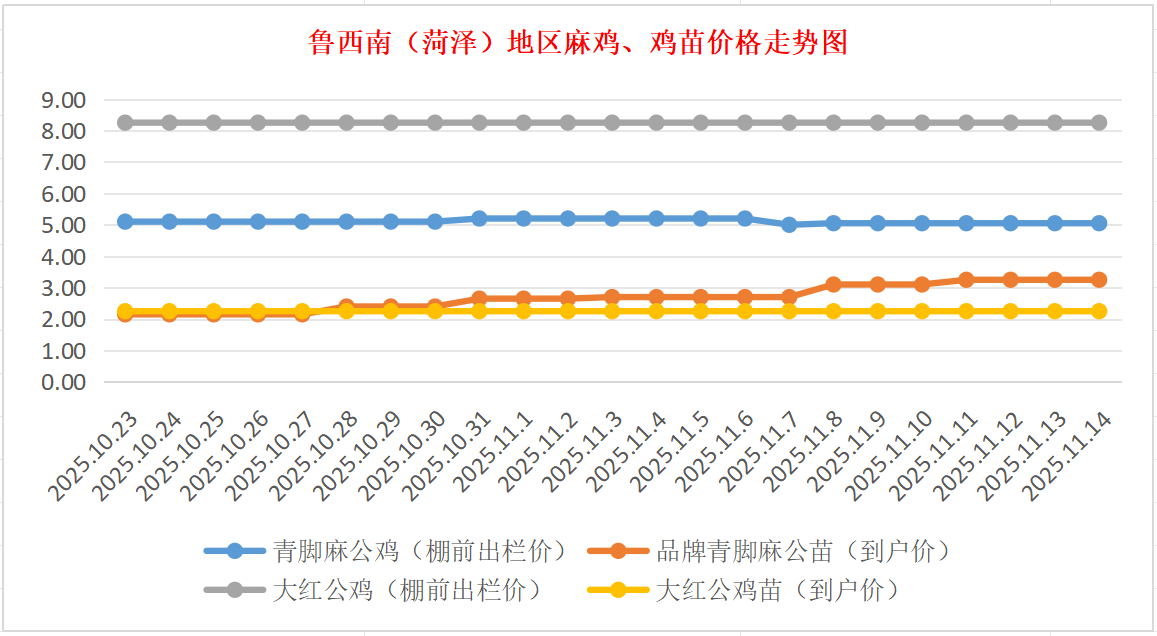 11月14日鲁西南(菏泽)地区麻鸡、鸡苗价格行情