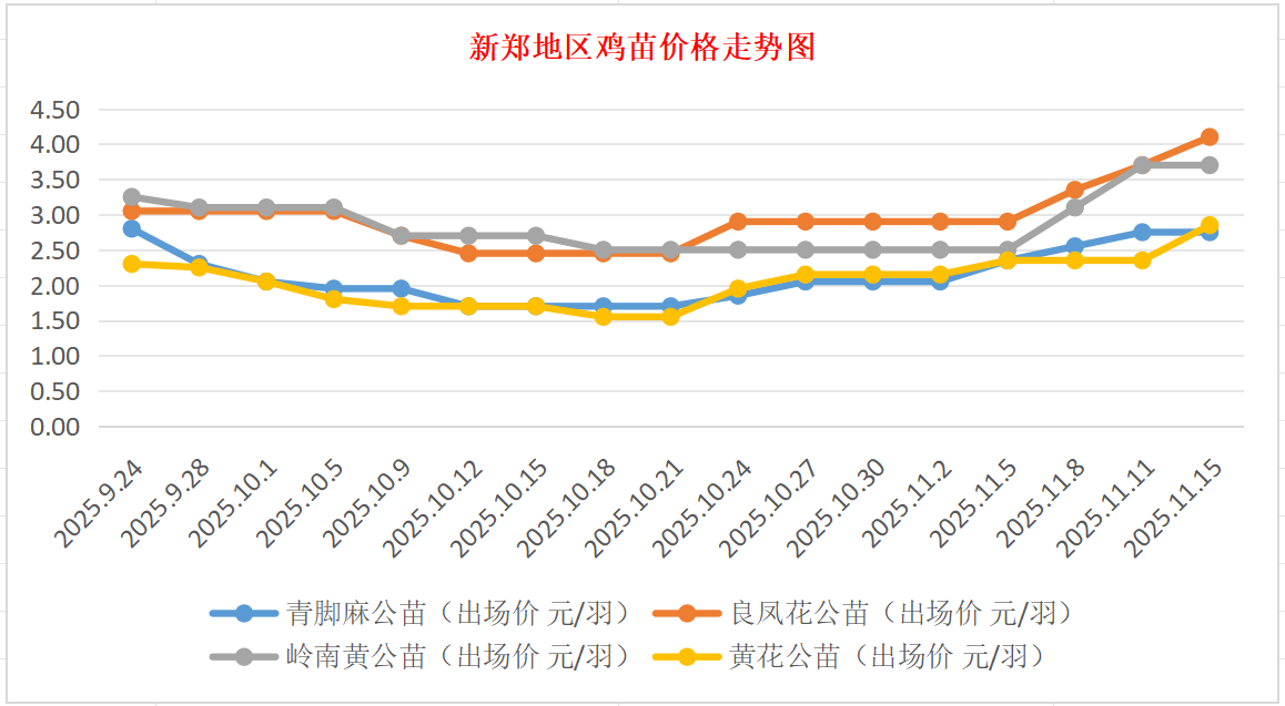 新郑地区鸡苗价格走势图(来源:鸡病专业网)