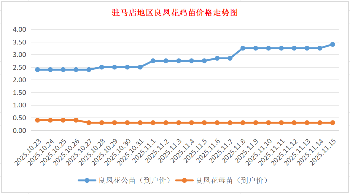 11月15日驻马店地区良凤花、岭南黄鸡苗价格行情