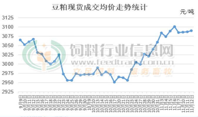 监测数据显示近期油厂豆粕价格在约三周的时间里从2960元/吨震荡偏强运行,截止目前已经抵达3090元/吨,上涨130元/吨,主要是近期中国恢复采购美国大豆后支撑美盘大豆价格上行,带动进口大豆成本增加后对市场提供支撑,油厂在压榨利润较差的情况下挺粕意愿较强,叠加终端养殖需求逐渐转旺助力,油厂豆粕现货价格出现上涨行情,但整体上行幅度有限。