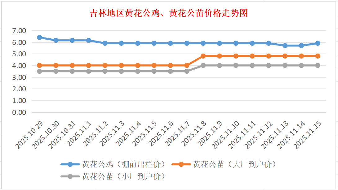 11月15日吉林黄花公鸡、鸡苗价格行情