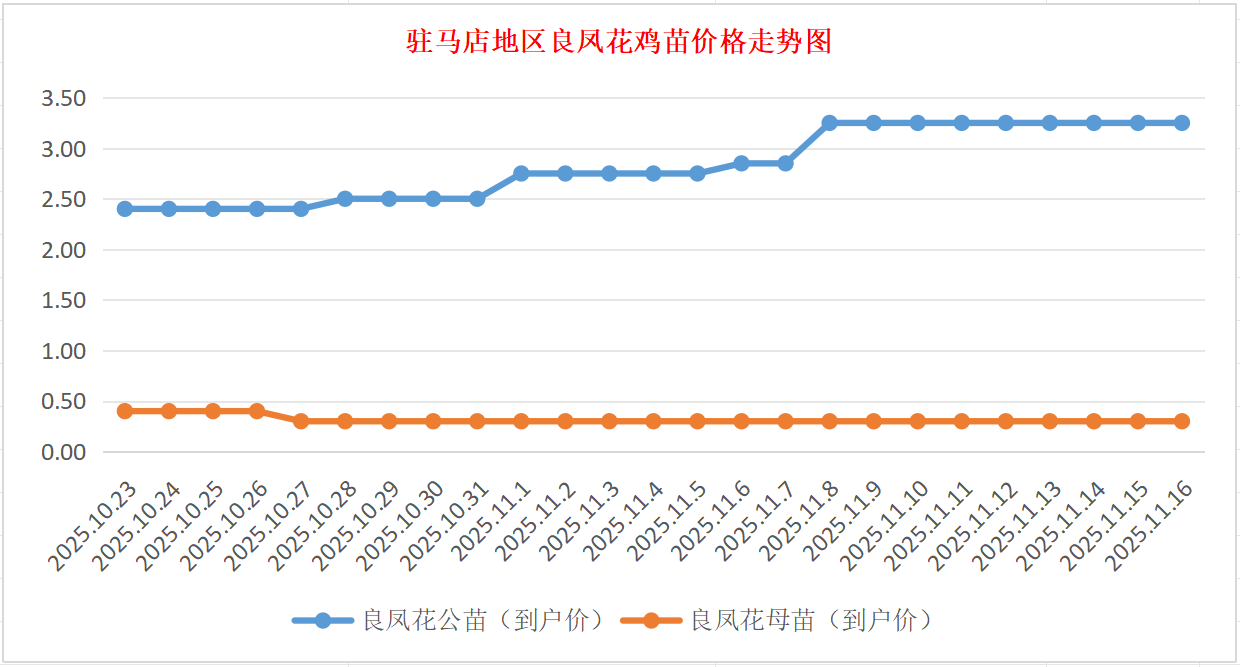 11月16日驻马店地区良凤花、岭南黄鸡苗价格行情