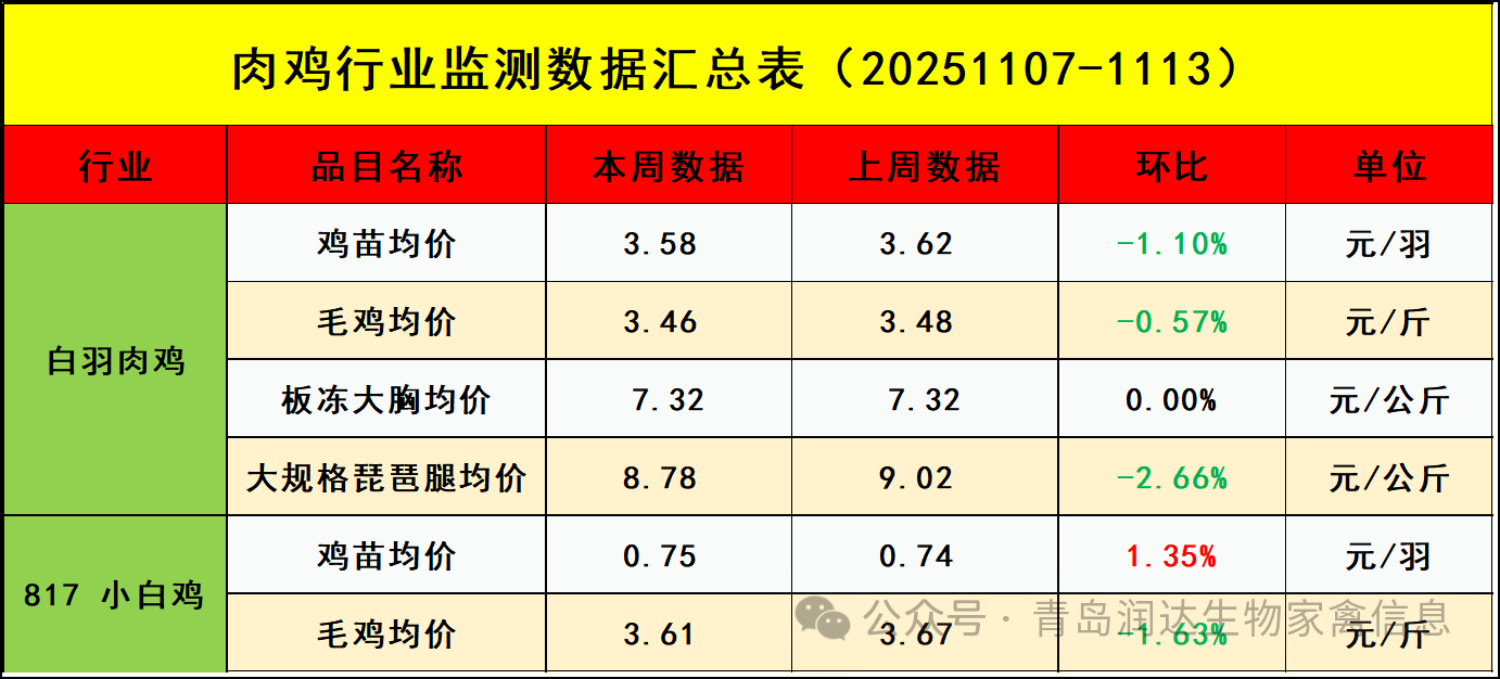 肉鸡市场行情:毛鸡供应量紧张,周内毛鸡价格微涨(20251107-1113)