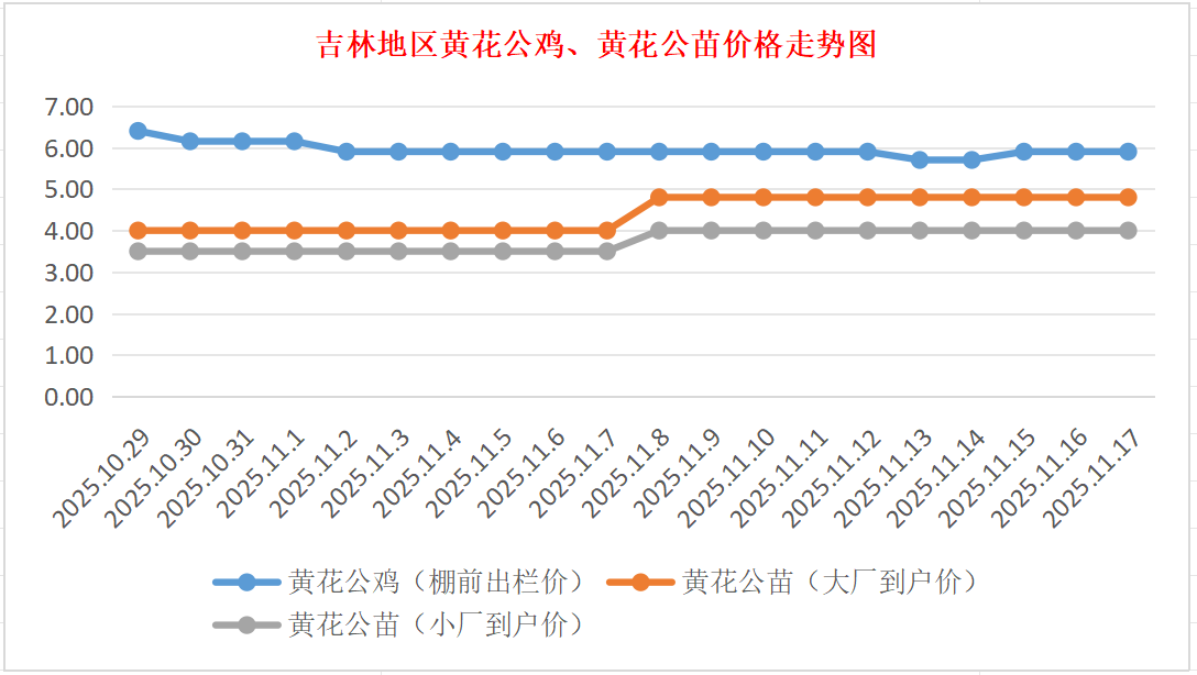 11月17日吉林黄花公鸡、鸡苗价格行情