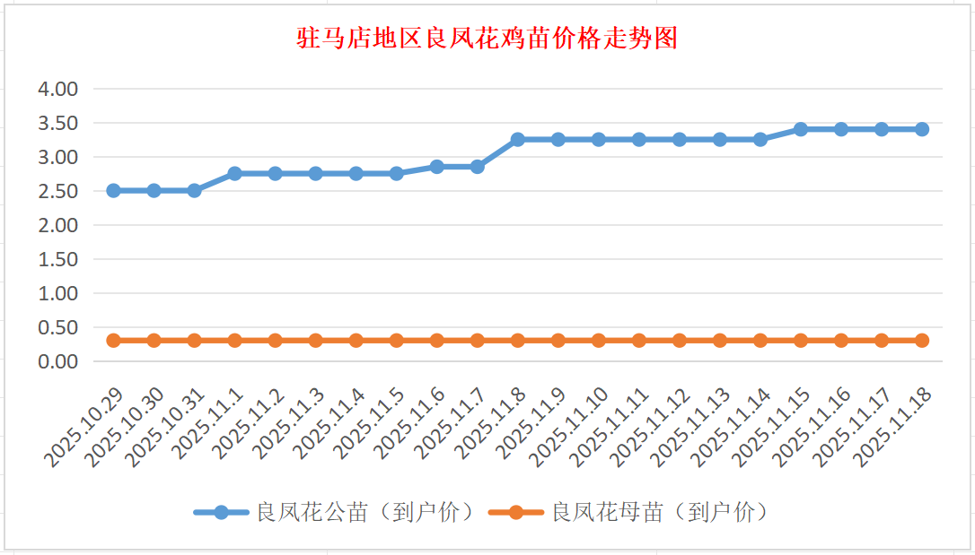 11月18日驻马店地区良凤花、岭南黄鸡苗价格行情