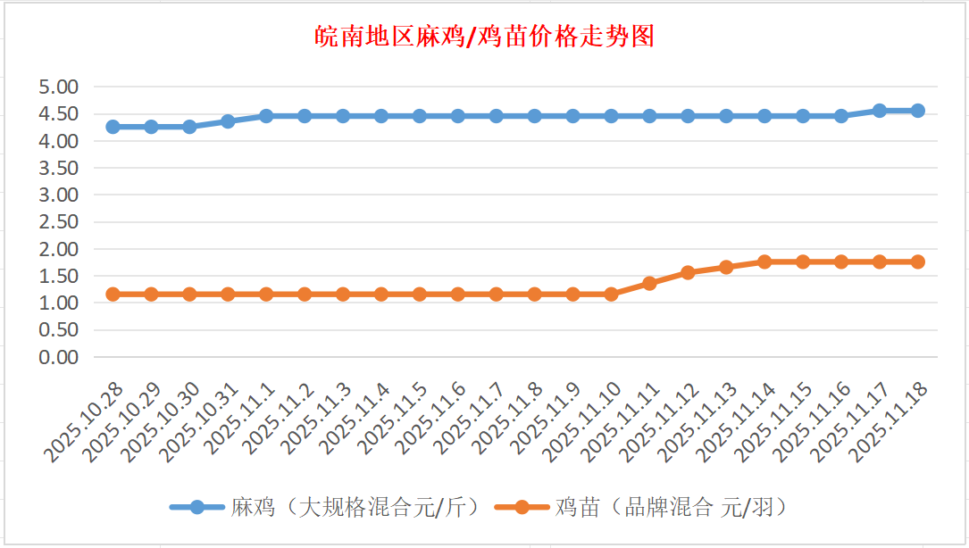 鸡病专业网独家信息:2025年11月18日皖南地区817-麻鸡行情最新走势
