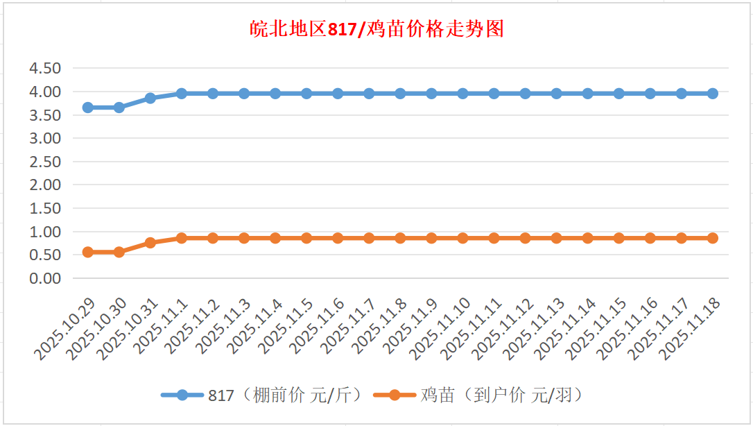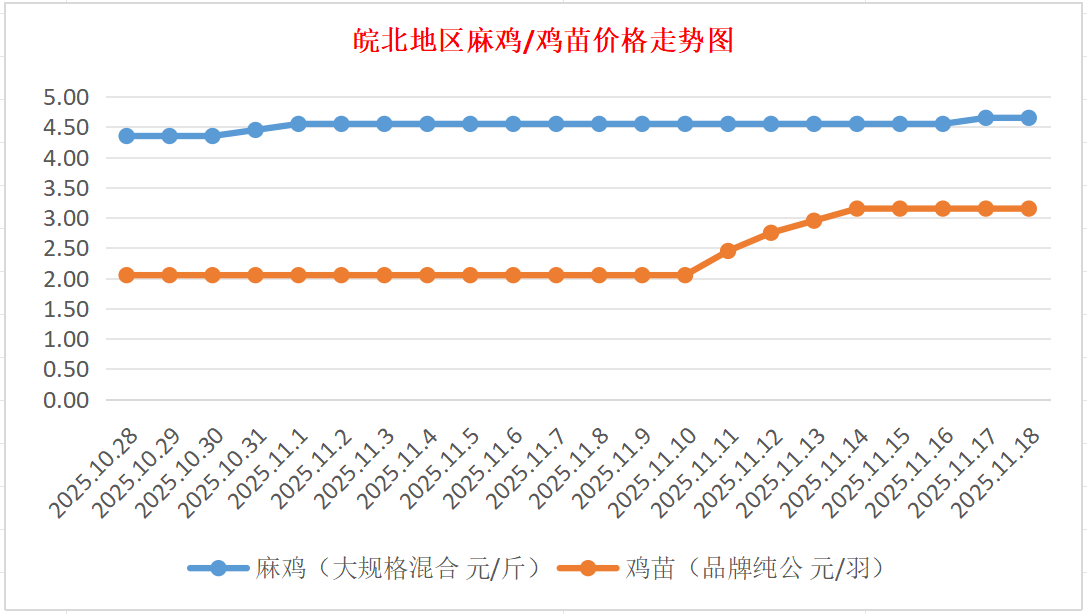 鸡病专业网独家信息:2025年11月18日皖北地区817-麻鸡行情最新走势