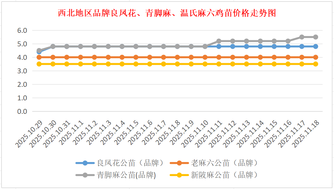 西北地区麻鸡苗价格走势图(来源:鸡病专业网)