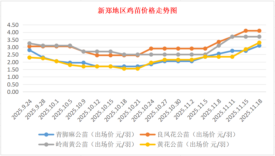 新郑地区鸡苗价格走势图(来源:鸡病专业网)