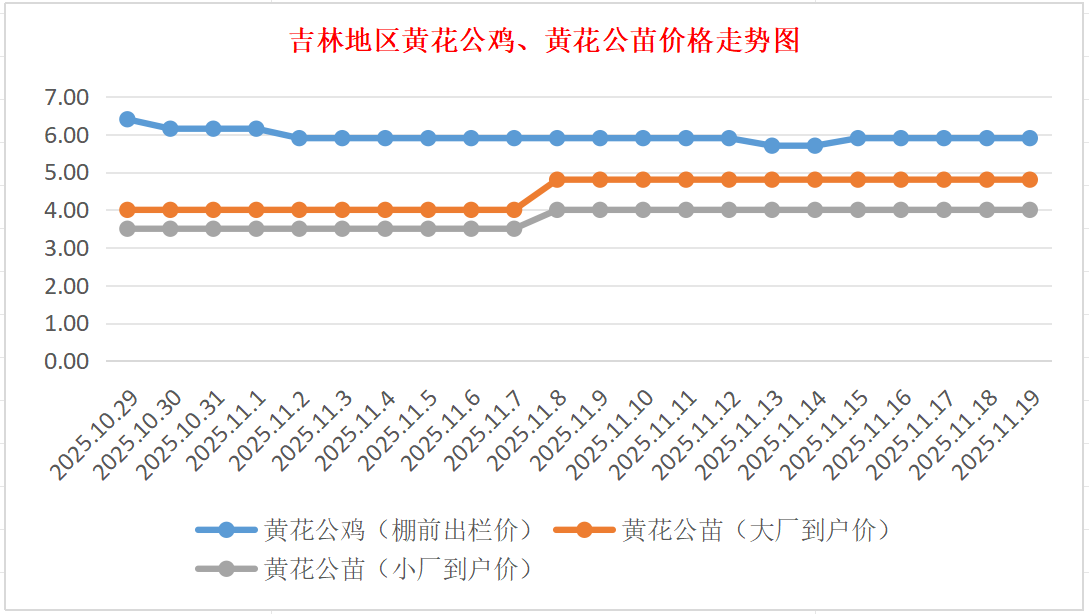 11月19日吉林黄花公鸡、鸡苗价格行情