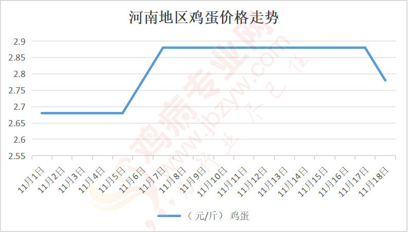 鸡病专业网消息:11月18日,河南郑州鸡蛋2.8元/斤,落;新密鸡蛋2.8元/斤,落;荥阳鸡蛋2.8元/斤,落;中牟鸡蛋2.8元/斤,落;周口鸡蛋2.75元/斤,落;商丘鸡蛋84元/30斤,落;鹤壁鸡蛋2.75元/斤,落;汝州鸡蛋2.75元/斤,落;开封鸡蛋83-84元/30斤,落;漯河鸡蛋2.75元/斤,落;漯河临颍鸡蛋2.75元/斤,落;许昌鸡蛋2.8元/斤,落;南阳鸡蛋2.75元/斤,落;南阳邓州鸡蛋2.75元/斤,落;新乡鸡蛋2.75元/斤,落;安阳鸡蛋2.75元/斤,落;新郑鸡蛋2.8元/斤,落;登封鸡蛋2.8元/斤,落;平顶山鸡蛋2.8元/斤,落;驻马店鸡蛋2.8元/斤,落;三门峡鸡蛋2.8元/斤,落;焦作鸡蛋2.75元/斤,落;信阳鸡蛋2.75元/斤,落;濮阳鸡蛋2.75元/斤,落。