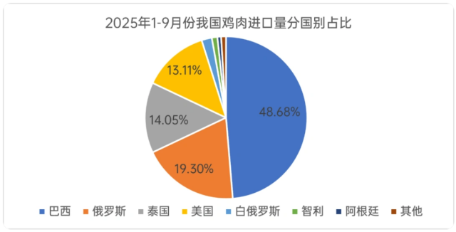 2025年1-9月份我国鸡肉进口量分国别占比