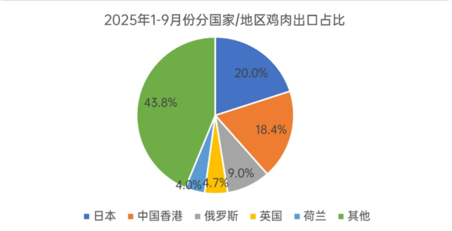 2025年1-9月我国鸡肉分国家/地区鸡肉出口占比