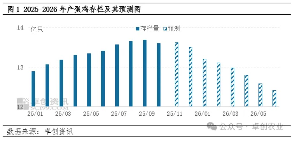 基于当前鸡苗销量及养殖周期推算,2025年四季度至2026年上半年,产蛋鸡存栏量预计逐步下降,鸡蛋供应将进入温和调整阶段,长期供大于求的格局有望逐步缓解,行业内部竞争压力或将有所减轻。然而,外部畜禽市场中生猪与肉鸡的供应压力依然较大,对鸡蛋价格难以形成有效支撑,而下半年重点关注主产品鸡蛋产能去化进度、季节性需求回升力度及相关产品价格变化对鸡蛋价格的影响程度,预计2026年鸡蛋市场价格将呈现“中枢上移、波动加剧”的运行趋势,年度鸡蛋均价或同比上调5.00%左右。