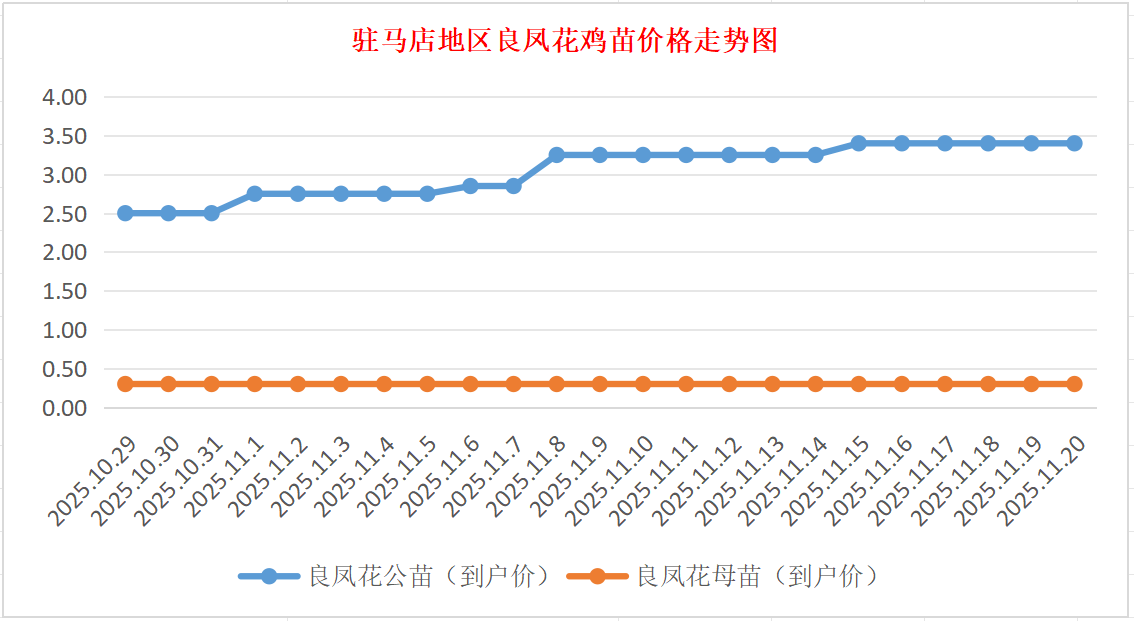 11月20日驻马店地区良凤花、岭南黄鸡苗价格行情