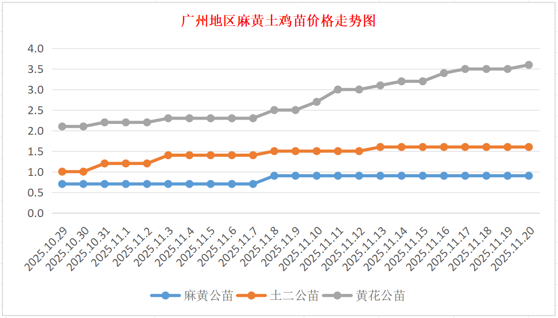 11月20日广州地区麻、黄、土鸡苗价格行情