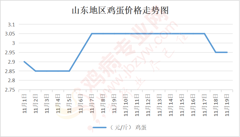 鸡病专业网消息:11月19日,山东地区莱阳鸡蛋2.95元/斤,稳;青岛鸡蛋2.95元/斤,稳;诸城鸡蛋3元/斤,稳;安丘鸡蛋2.9元/斤,稳;昌乐鸡蛋2.9元/斤,稳;寿光鸡蛋2.9元/斤,稳;昌邑鸡蛋2.9元/斤,稳;高密鸡蛋3元/斤,稳;青州鸡蛋2.9元/斤,稳;临朐鸡蛋2.9元/斤,稳;莱州鸡蛋2.95元/斤,稳;威海鸡蛋2.95元/斤,稳;临沭鸡蛋2.9元/斤,稳;沂水鸡蛋2.9元/斤,稳;沂南鸡蛋2.9元/斤,稳;莒南鸡蛋2.9元/斤,稳;兰陵县鸡蛋2.9元/斤,稳;日照鸡蛋2.9元/斤,稳;莒县鸡蛋2.9元/斤,稳;日照辛萁商贸鸡蛋2.9元/斤,稳;泗水鸡蛋价格84元/30斤,稳;济宁、汶上鸡蛋价格84元/30斤,稳;梁山、东平红蛋价格84元/30斤,稳;枣庄滕州地区鸡蛋混码主流到户86元/30斤,稳;泰安地区新泰鸡蛋价格84元/30斤,稳;菏泽地区曹县主流到户84元/30斤,稳;成武鸡蛋价格84元/30斤,稳;单县到户84元/30斤,稳;聊城莘县84元/30斤,稳。
