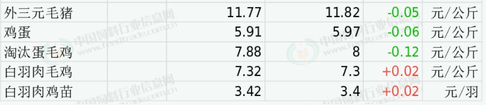 全国淘汰蛋毛鸡均价下跌。受养殖端蛋毛鸡淘汰出栏量止增转下降、居民禽肉消费需求继续改善、出栏大猪价格总体偏强等因素的综合影响,预计近期淘汰鸡价格将延续偏弱调整趋势。今日山东地区淘汰蛋毛鸡均价8.35元/公斤,较昨日价格下跌0.02;江苏地区淘汰蛋毛鸡均价9.00元/公斤,与昨日价格持平;辽宁地区淘汰蛋毛鸡均价8.20元/公斤,较昨日价格下跌0.40。