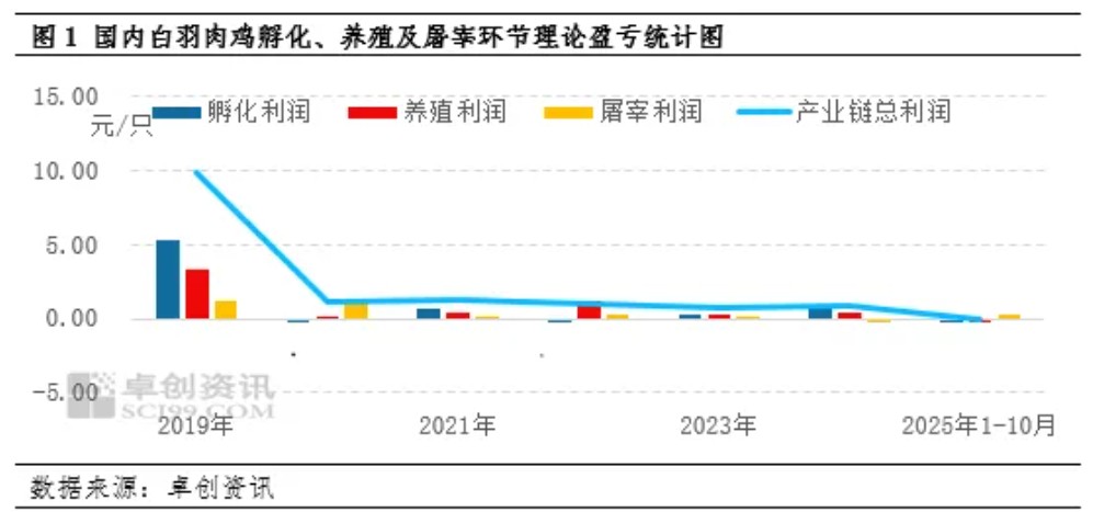 2025年白羽肉鸡行业孵化及养殖利润转亏,屠宰利润回升明显