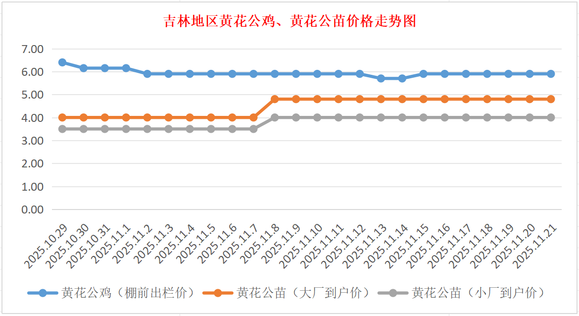 11月21日吉林黄花公鸡、鸡苗价格行情