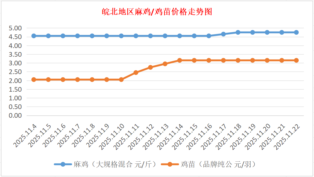 鸡病专业网独家信息:2025年11月22日皖北地区817-麻鸡行情最新走势