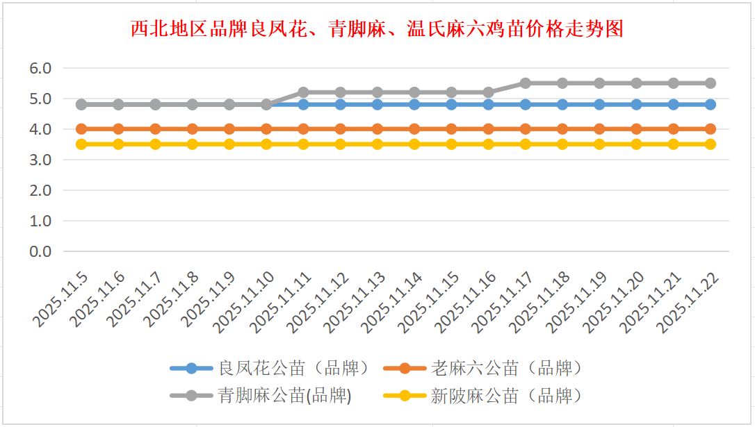西北地区麻鸡苗价格走势图(来源:鸡病专业网)