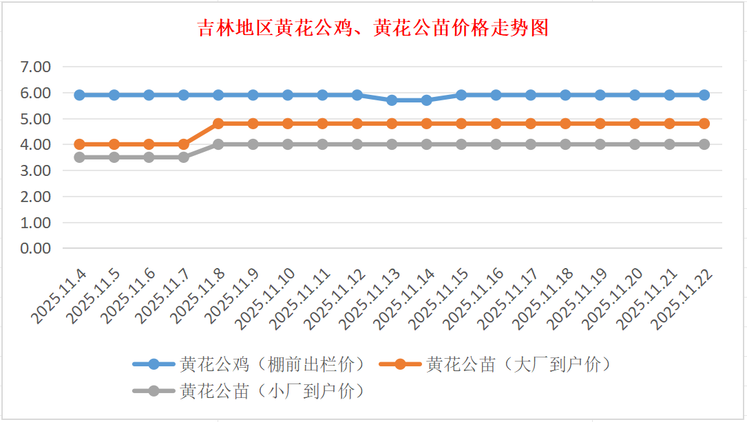 11月22日吉林黄花公鸡、鸡苗价格行情