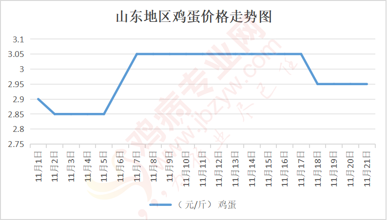 鸡病专业网消息:11月21日,山东地区莱阳鸡蛋2.95元/斤,稳;青岛鸡蛋2.95元/斤,稳;诸城鸡蛋3元/斤,稳;安丘鸡蛋2.9元/斤,稳;昌乐鸡蛋2.9元/斤,稳;寿光鸡蛋2.9元/斤,稳;昌邑鸡蛋2.9元/斤,稳;高密鸡蛋3元/斤,稳;青州鸡蛋2.9元/斤,稳;临朐鸡蛋2.9元/斤,稳;莱州鸡蛋2.95元/斤,稳;威海鸡蛋2.95元/斤,稳;临沭鸡蛋2.9元/斤,稳;沂水鸡蛋2.9元/斤,稳;沂南鸡蛋2.9元/斤,稳;莒南鸡蛋2.9元/斤,稳;兰陵县鸡蛋2.9元/斤,稳;日照鸡蛋2.9元/斤,稳;莒县鸡蛋2.9元/斤,稳;日照辛萁商贸鸡蛋2.9元/斤,稳;泗水鸡蛋价格84元/30斤,稳;济宁、汶上鸡蛋价格84元/30斤,稳;梁山、东平红蛋价格84元/30斤,稳;枣庄滕州地区鸡蛋混码主流到户86元/30斤,稳;泰安地区新泰鸡蛋价格84元/30斤,稳;菏泽地区曹县主流到户84元/30斤,稳;成武鸡蛋价格84元/30斤,稳;单县到户84元/30斤,稳;聊城莘县84元/30斤,稳。