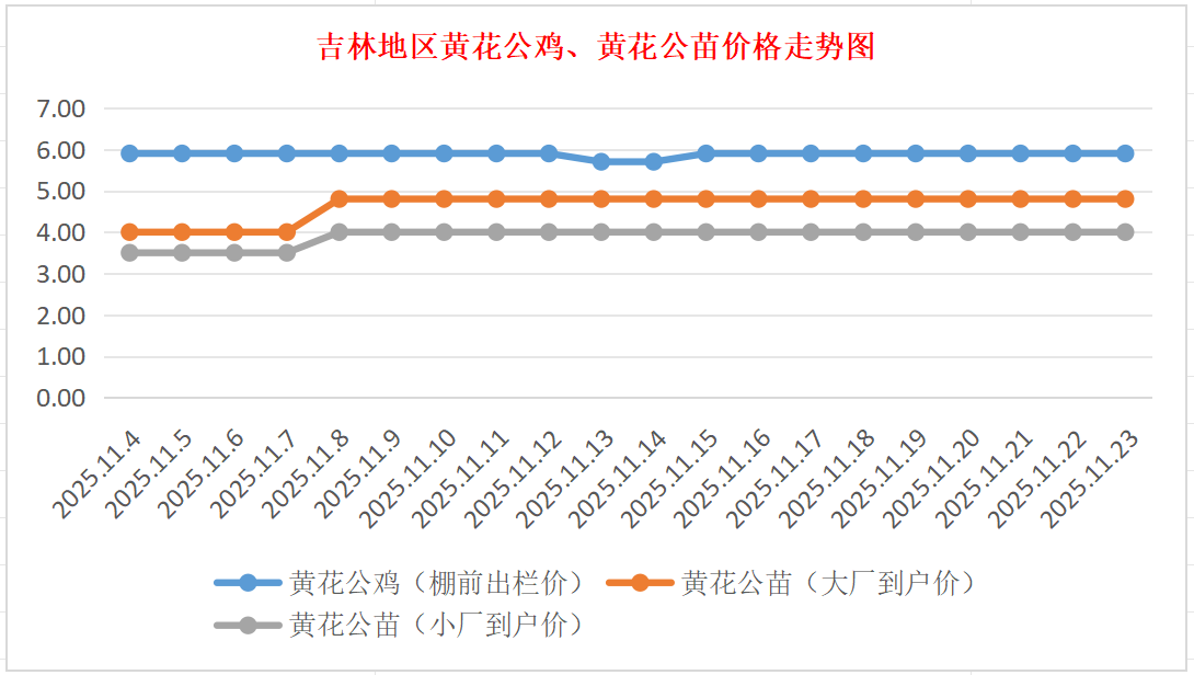 11月23日吉林黄花公鸡、鸡苗价格行情