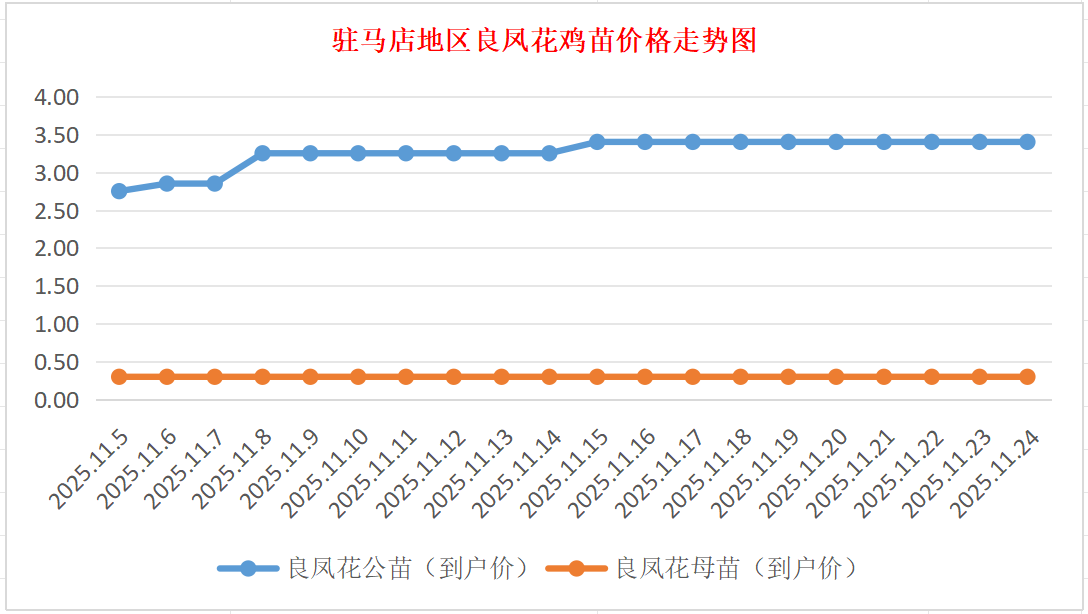 11月24日驻马店地区良凤花、岭南黄鸡苗价格行情