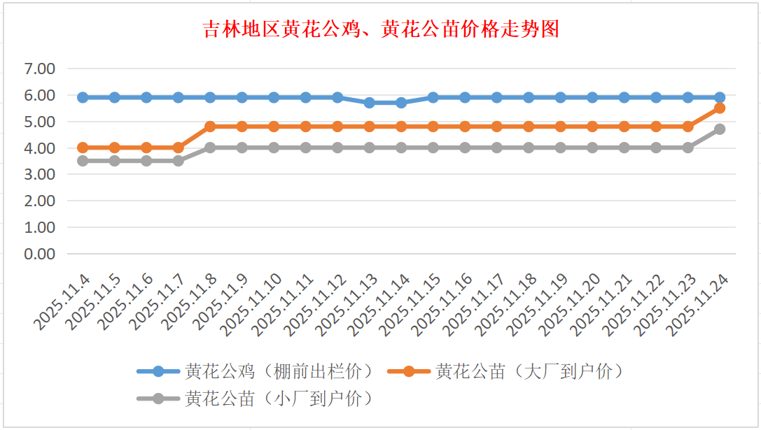 11月24日吉林黄花公鸡、鸡苗价格行情