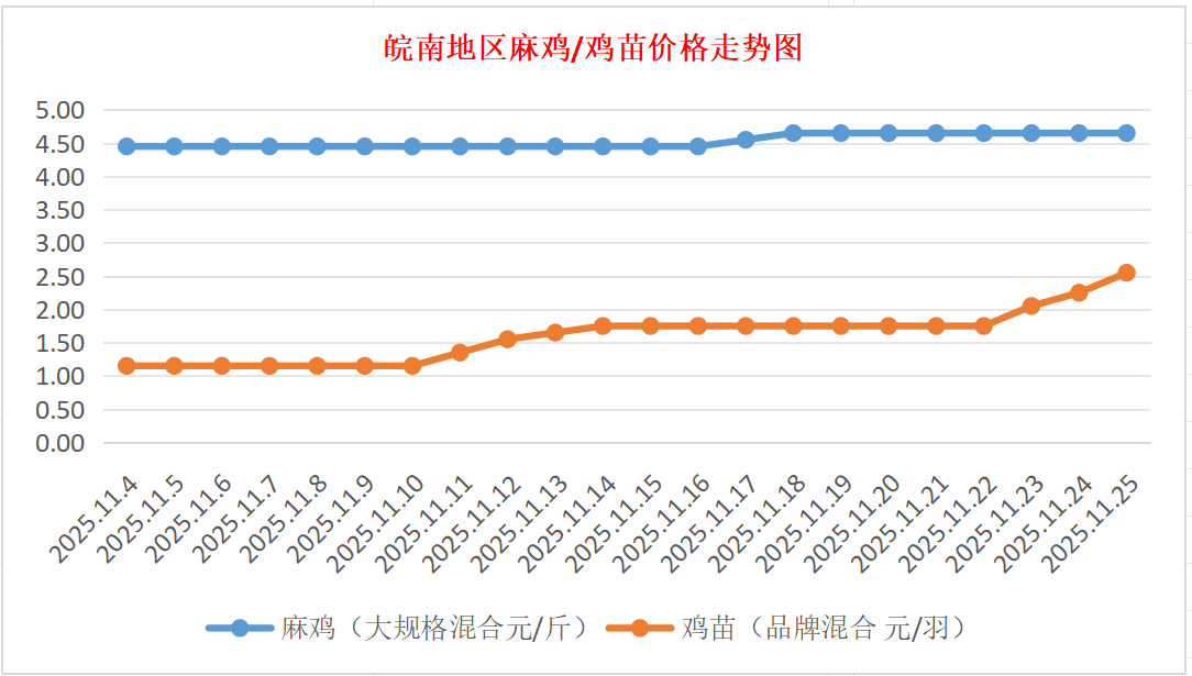 鸡病专业网独家信息:2025年11月25日皖南地区817-麻鸡行情最新走势