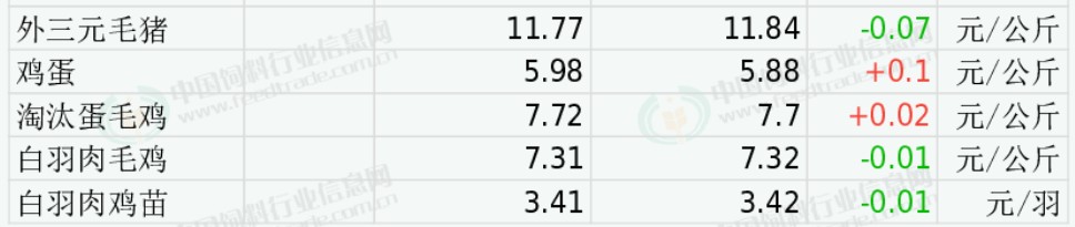 全国淘汰蛋毛鸡均价稳中有涨。受养殖端蛋毛鸡淘汰出栏量止增转下降、居民禽肉消费需求继续改善、出栏大猪价格总体偏强等因素的综合影响,预计近期淘汰鸡价格将延续震荡调整趋势。今日山东地区淘汰蛋毛鸡均价8.12元/公斤,与昨日价格持平;江苏地区淘汰蛋毛鸡均价8.80元/公斤,与昨日价格持平;辽宁地区淘汰蛋毛鸡均价8.00元/公斤,与昨日价格持平。