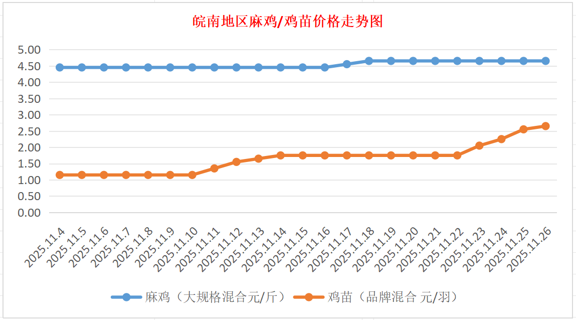 鸡病专业网独家信息:2025年11月26日皖南地区817-麻鸡行情最新走势