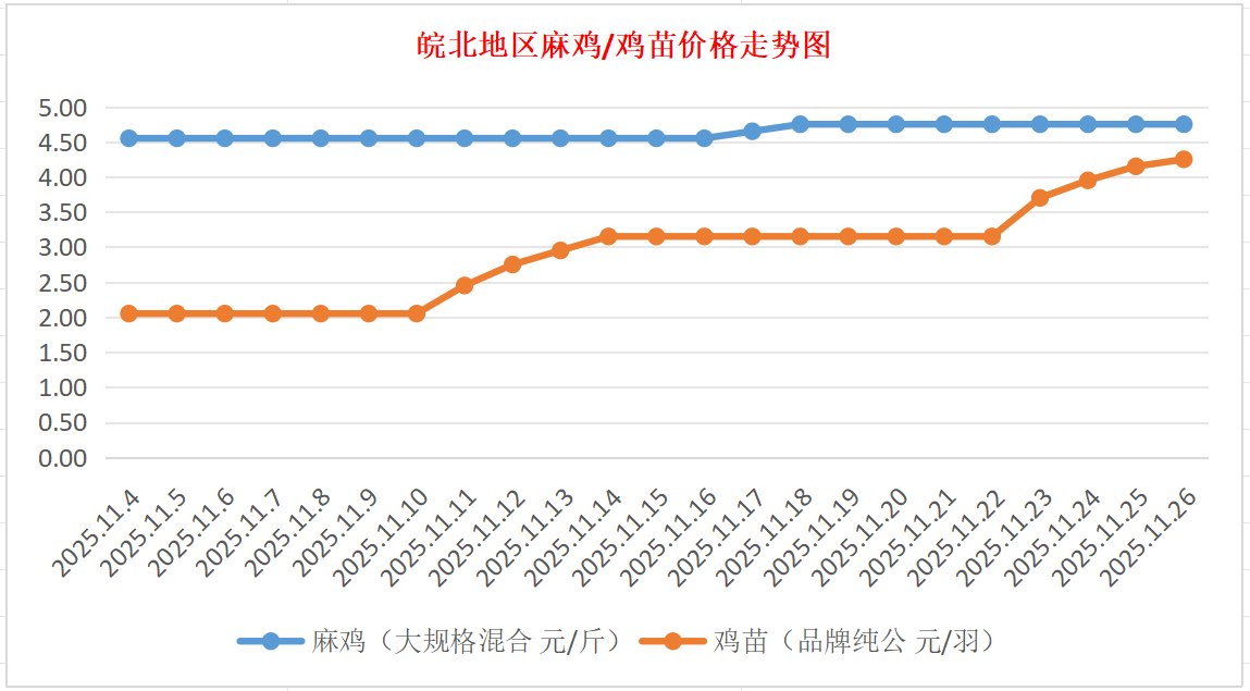 鸡病专业网独家信息:2025年11月26日皖北地区817-麻鸡行情最新走势